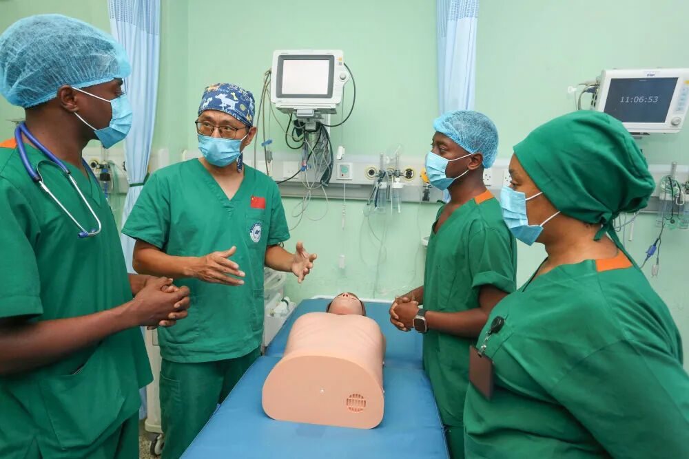 穆欣比利國立醫院是坦桑尼亞國家級醫院,設有多個手術中心,但長期面臨麻醉人手短缺難題。張軍橋生前接受新華社記者采訪時曾表示,這種情況讓他意識到,“必須帶人,必須留下東西”。他從教學抓起,組織多場面向本地醫護人員和醫學生的麻醉技術專項培訓。在課堂上,張軍橋從不照本宣科,而是反復示范、手把手帶教。在穆欣比利國立醫院坦桑醫護人員心中,張軍橋不僅是中國來的醫生,更是他們的“引路人”。