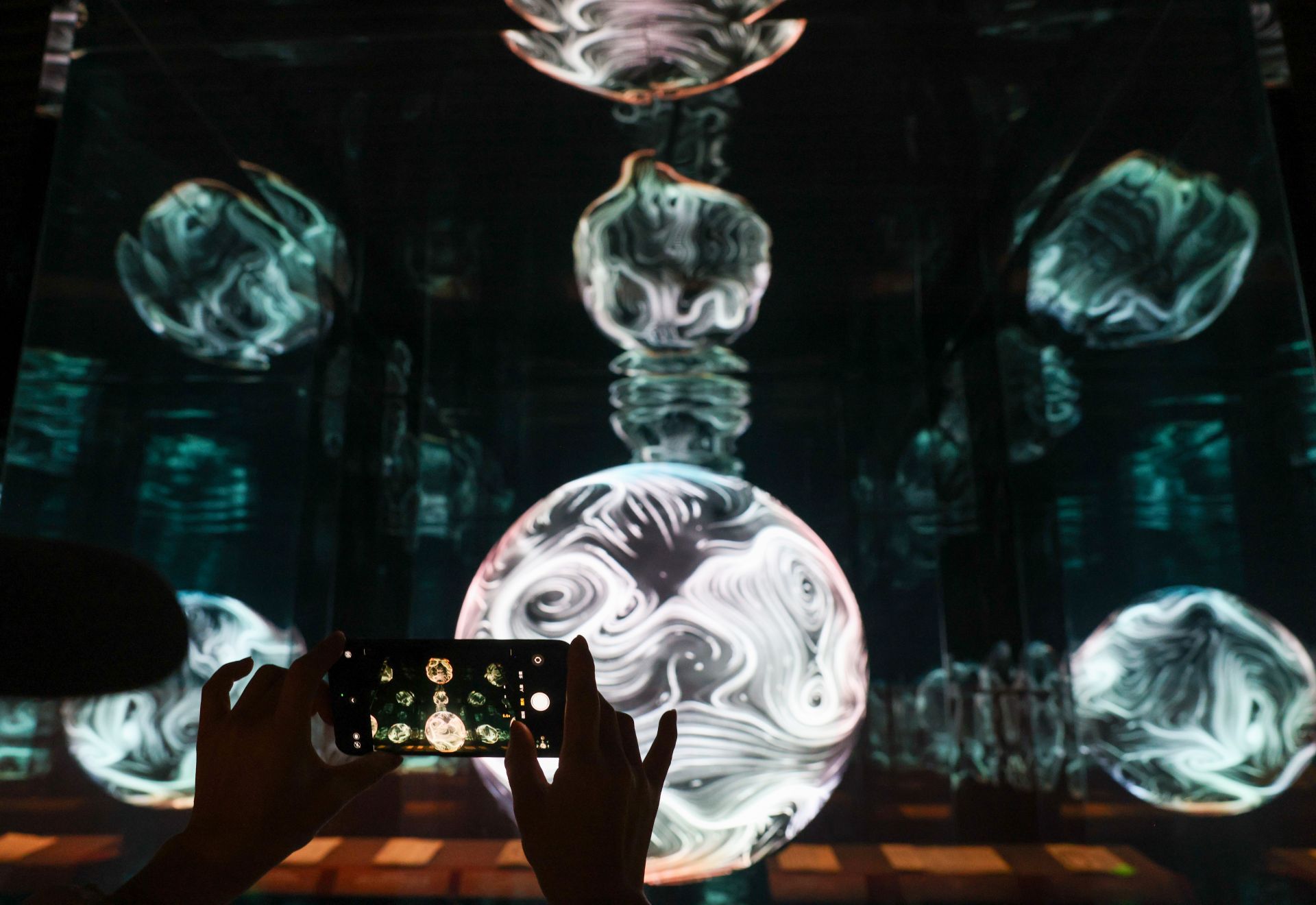 2月27日,參觀者在“既往未來——小西天文物擷珍與懸塑藝術特展”的“無量之境”展臺拍攝。